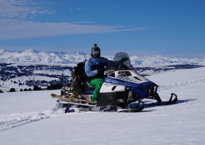 El paseo en moto de nieve atraviesa sendas boscosas y sectores abiertos con bellas vistas panorámicas, en un entorno único y natural.
