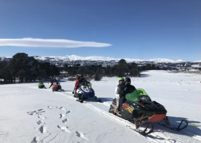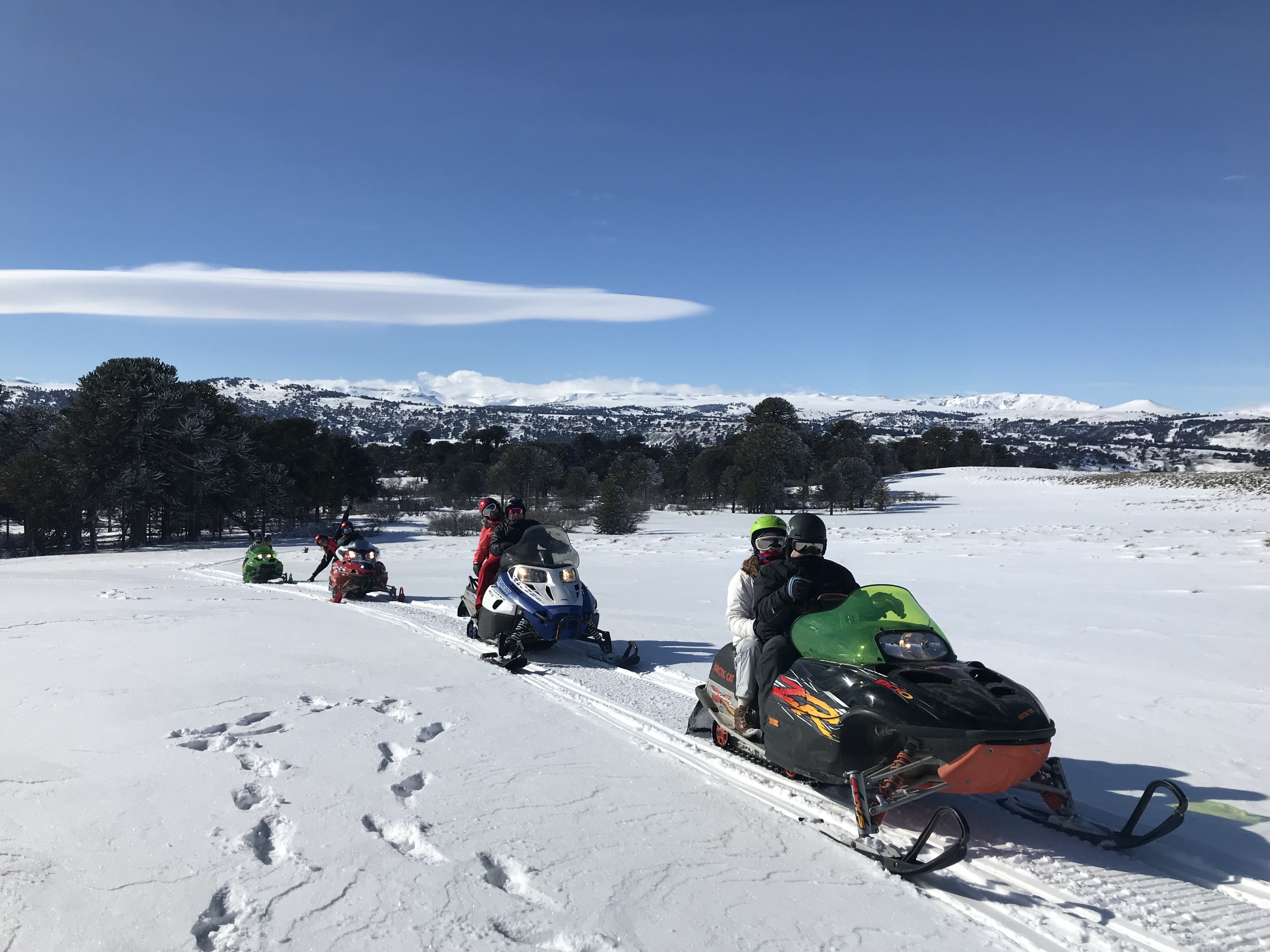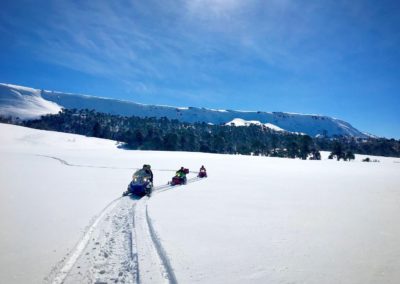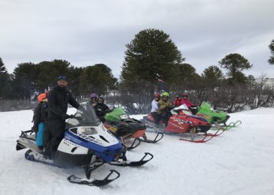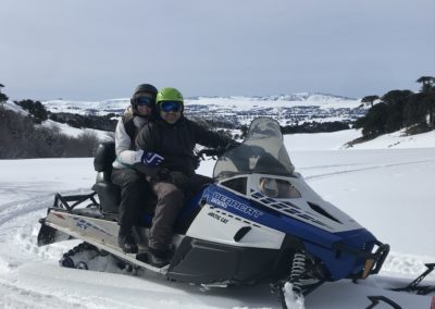 Saliendo desde Villa Pehuenia, los pasaremos a buscar por su alojamiento en vehículos 4×4, allí nos dirigiremos a 20 km de distancia hasta llegar al circuito de las motos de nieve donde contamos con un permiso especial de uso turístico en un valle con presencia de bosques milenarios, en el cual se accede únicamente en vehículo 4×4 y bajo reglas estrictas de conservación.